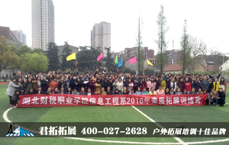 3月24日,武汉君拓拓展携手湖北财税职业学院信息工程系的同学们在湖北财税职业学院校园内开展了一场为期1天的拓展活动,湖北财税职业学院信息工程系的 同学们在湖北财税职业学院校园内进行了一系列的拓展的活动,激励前进,遨游九天,心有多大,天地就有多宽广,每次的努力,每次成功的喜悦,每次疲惫的痛楚 见证着你们的成长!武汉君拓预祝全体同学学业有成!!!