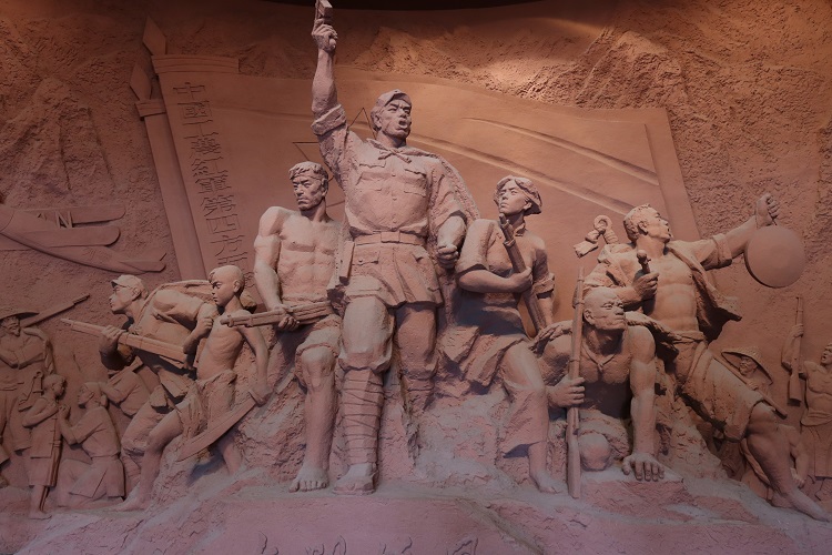 从纪念碑后行百米便是烈士祠,祠内设有烈士灵堂,陈列着红安全县革命英烈的名册及各界人民群众敬献的花圈。祠后面是骨灰堂,东边是董必武纪念馆和红安县博物馆。董必武纪念馆由徐向前元帅题写馆名。拾阶而上,汉白玉雕塑的董必武像慈祥安逸,馆里数幅照片和数十件实物展示了董必武伟大的一生。![]()