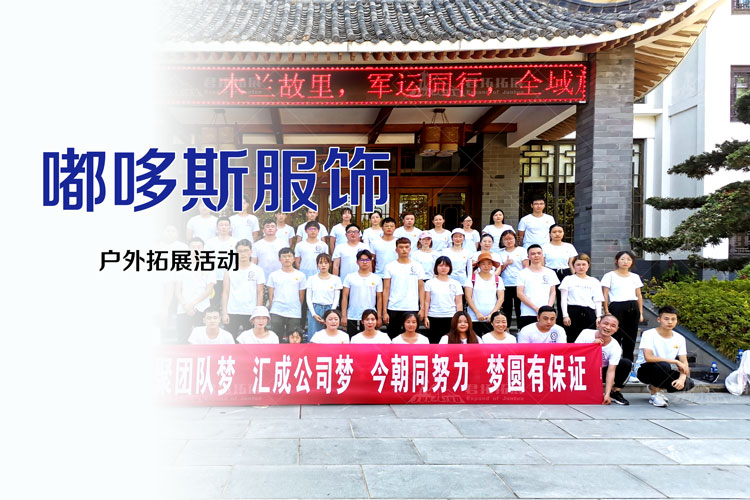 嘟哆斯服饰户外拓展活动”嘟哆斯服饰“在木兰天池进行户外拓展活动,他们的口号是“凝聚团队梦,汇成公司梦,今朝同努力,梦圆有保证”。