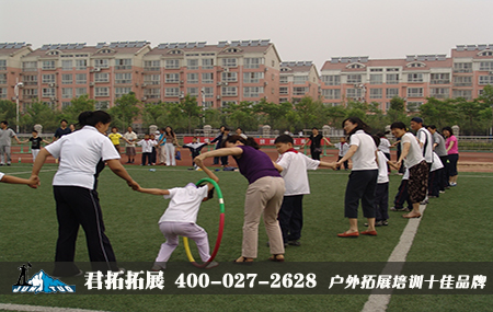 动感五环趣味运动会项目_动感五环:比赛开始前,比赛器材置于起跑线后。1名队员立于比赛器材内,3名队员在外掌控方向,推动比赛器材。裁判发令后,3名队员通过协调配合使比赛器材在跑道上行进,赛程为60米。以各参赛队所用比赛器材触及终点线所在垂直平面为计时停止,用时少者名次列前。