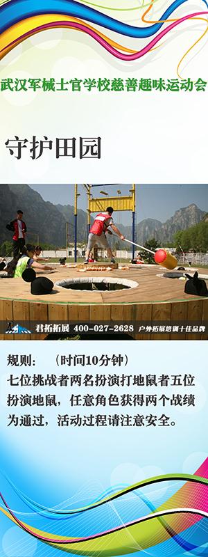 拓展项目:真人cs野战、百步穿杨、巨型筷子、愤怒的小鸟、一杆进洞、激情对对碰、撕名牌、守护田园、桌上足球、趣味保龄球、九宫射门、保卫气球、大脚板、财源滚滚、指压板跳神、疯狂呼啦圈